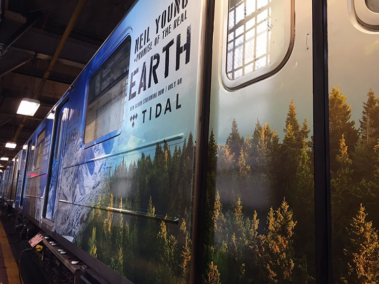 Neil Young's latest live album EARTH came out back in June, and to celebrate, Young partnered with streaming service TIDAL to create an "installation" piece for the New York City subway system. The S train is an elusive shuttle line ("S" stands for shuttle) that runs in Brooklyn, Queens, and Manhattan. Young and TIDAL decorated one of the Manhattan S trains with various nature-related photographs, and according to EcoWatch, the subway cars are "filled with facts that Young wants to share with riders." It will run 7/15-7/31 from Grand Central Station, and anyone who visits the train today from noon until 3 p.m. will receive a voucher for three months of ~*free*~ TIDAL. If you are a TIDAL member already, you can stop by Grand Central and pick up a complementary round-trip MetroCard to ride the train. Or, if you're dishonest like me and don't care about the Earth Train, you can pick up the MetroCard and take the subway someplace else entirely free of charge! Like the beach or Prospect Park, for example. Just an idea ;) .