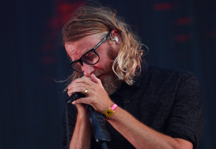 Filling the big indie headliner role on Saturday were Arcade Fire's buddies in the National, the group I love but am still surprised, on some level, to see topping festival bills all the time. It's some feat of patience and something in the air, I suppose, that the National's smoldering, meditative brand of indie rock has been elevated to this level of mainstage power. Of course, the group has long since adapted to that kind of stage -- they lean on anthems like "Bloodbuzz Ohio" and "Terrible Love" and "Fake Empire" and "Don't Swallow The Cap," and at this point expertly deploy the extra tension and drama endemic to live versions of songs like "Squalor Victoria." The group is currently at work on their seventh album and have been road-testing some new songs, as they often do in the lead-up to a new record. A few songs in, they played "The Day I Die," a track that has Matt Berninger gently singing over the brighter, harsher guitarwork the band had suggested they were exploring. They also played "Find A Way," which Berninger sardonically introduced as being "even more melodramatic than the other [new song]," before joking "Can it go any further?" Both tracks are very strong, and alongside the other stuff they've been teasing, it all seems promising for their next album. Otherwise it was a mixture of Trouble Will Find Me material and older anthems, the sunset off to the right of the festival a perfect backdrop for a band like the National playing the second-to-last mainstage set of the night.