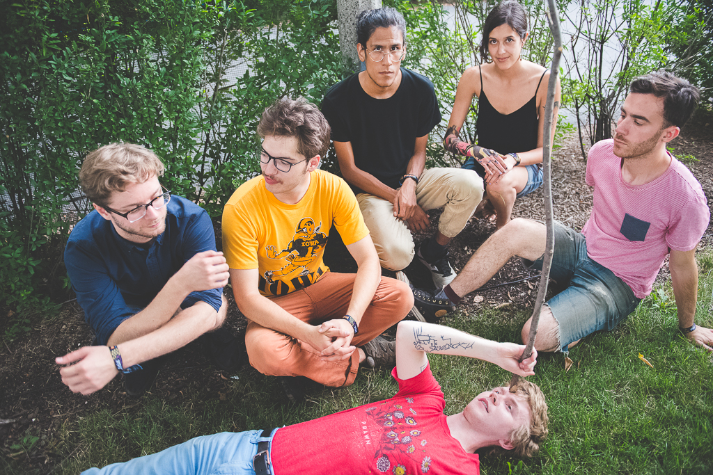 Earlier this year, Pinegrove released Cardinal, one of our favorite albums of the year so far. The group -- built on the foundation of core duo Evan Stephens Hall (guitar/vocals) and Zack Levine (drums) -- hails from Montclair, NJ and has steadily accrued a fervent following in the DIY rock sphere, often getting lumped in with emo-leaning rock despite their rootsier inclincations. Yesterday, Pinegrove took the stage at Spinmedia's Toyota Music Den at Lollapalooza, playing a stripped-down set with the whole band lined up on chairs either playing guitar or providing backup vocals. Afterwards, we caught up with Hall to talk about the increasing exposure of his project, what he's reading right now, and the murky complexity that comes with drawing on your life to make art.