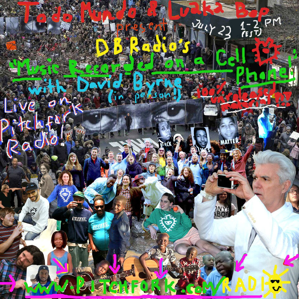 In late July, during an episode of his DB Radio show aired during Pitchfork Radio's New York City pop-up broadcast, David Byrne premiered a playlist called "Music Recorded On A Cell Phone," the purpose being to "honor and celebrate all those people out there who capturing and sharing important moments with people around the world." Along with recordings of a 2014 protest march for Eric Garner and a busking saxophonist Byrne saw one evening during a walk through Grand Army Plaza in Brooklyn, NY, the playlist featured an unreleased song by Byrne called "Send Her To Heaven," which is set to be featured in Byrne's new musical about Joan Of Arc.