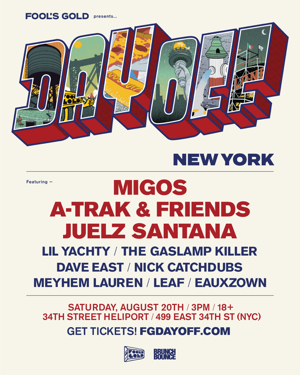 Speaking of A-Trak's live shows, his label Fool's Gold is hosting their seventh annual Day Off festival in Brooklyn a few weeks from now, an event which will feature a performance from the bossman himself, as well as sets by Lil Yachty, Migos, Juelz Santana, Dave East, and a splattering of other musicians both on and off the label. It's sure to be a fun, extremely sweaty time at the 34th Street Heliport. Check out details for the NYC edition of Fool's Gold Day Off in the banner below.