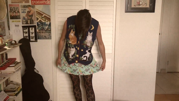 Last month, Jordaan Mason released their great new album, form less, and today the Toronto-based musician is sharing a video for the record's closing track, "Never Homesick." "I want to buy you clothes you'll be too ashamed to wear in public," Mason sings on the track. "So when you put them on, you'll never have to be homesick." Appropriately enough, the video starts with Mason trying on a bunch of different outfits before settling on a cat vest/floral pants combo and venturing out into the city. Mason sets the scene: