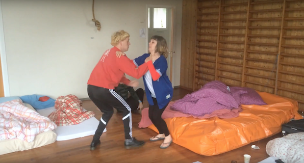 In June, bright Bristol indie-poppers Trust Fund surreptitiously released an entire new album, We Have Always Lived In The Harolds. Today, the band has shared a video for album highlight "Crab Line," which features the project's primary songwriter Ellis Jones and the rest of his band goofing around and wrestling around in a Norwegian hostel room occupied by a ton of beds. It's a lot of fun, and you can watch via NPR below.