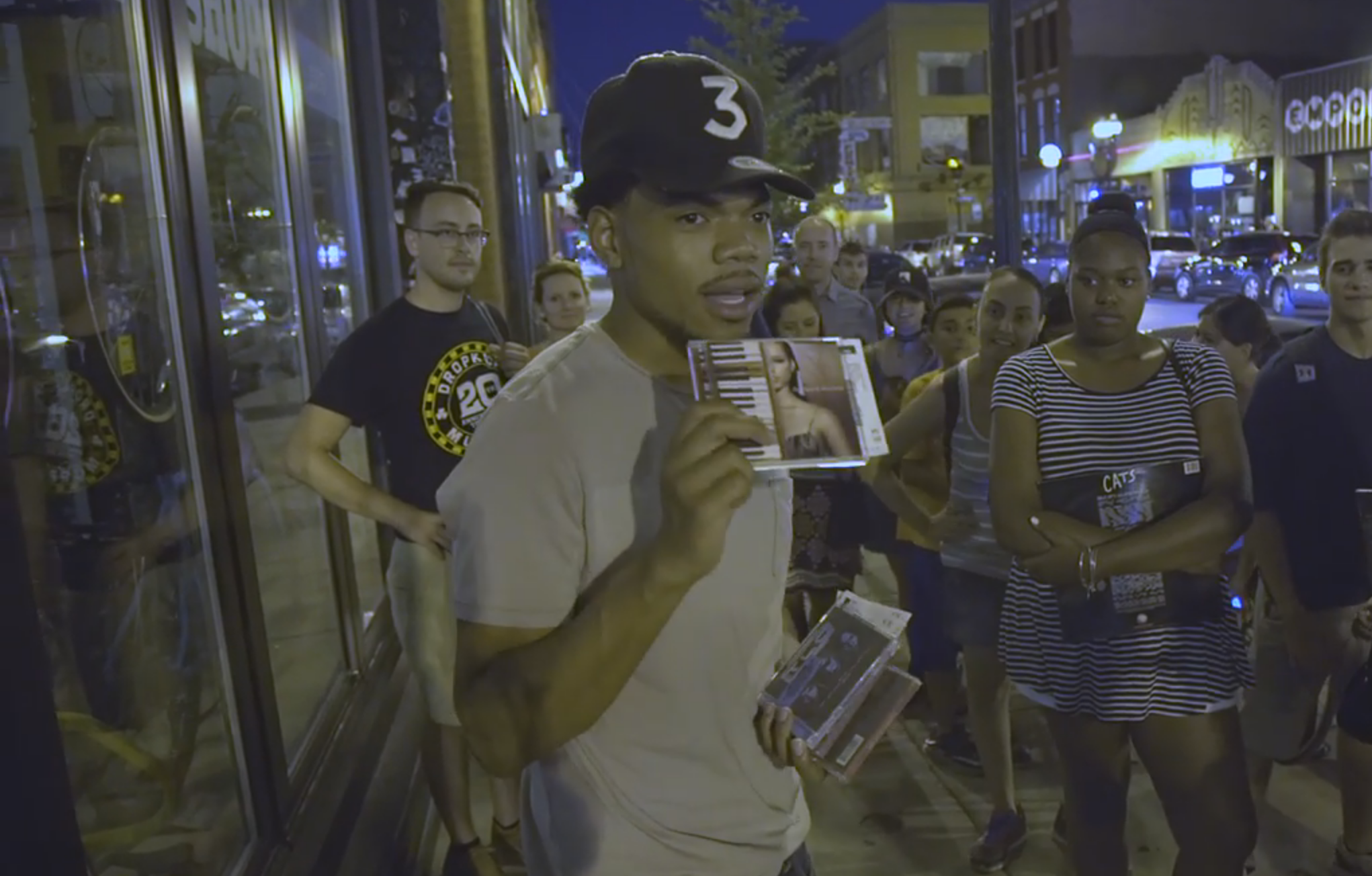 Chance The Rapper has been giving away his own music for free for years. But now, he's apparently graduated to giving away other people's music for free. In a new video for Billboard to promote his new cover story, the young star heads to Reckless Records in Chicago's Wicker Park to "buy a bunch of music that I've never heard before and give it out to people for free, 'cause why not?" So he sets up camp on the sidewalk and hands out albums by the likes of FKA Twigs, Mick Jenkins, Lenny Kravitz, Kenny G, Ariana Grande, the O'Jays, John Legend, and the cast of the hit musical Cats to his adoring fans while shouting things like "Free music! Get yer free music!" He also calls Joanna Newsom's Ys "one of my favorite albums of all time" and keeps a copy of Divers for himself, because he has excellent taste. Watch below.