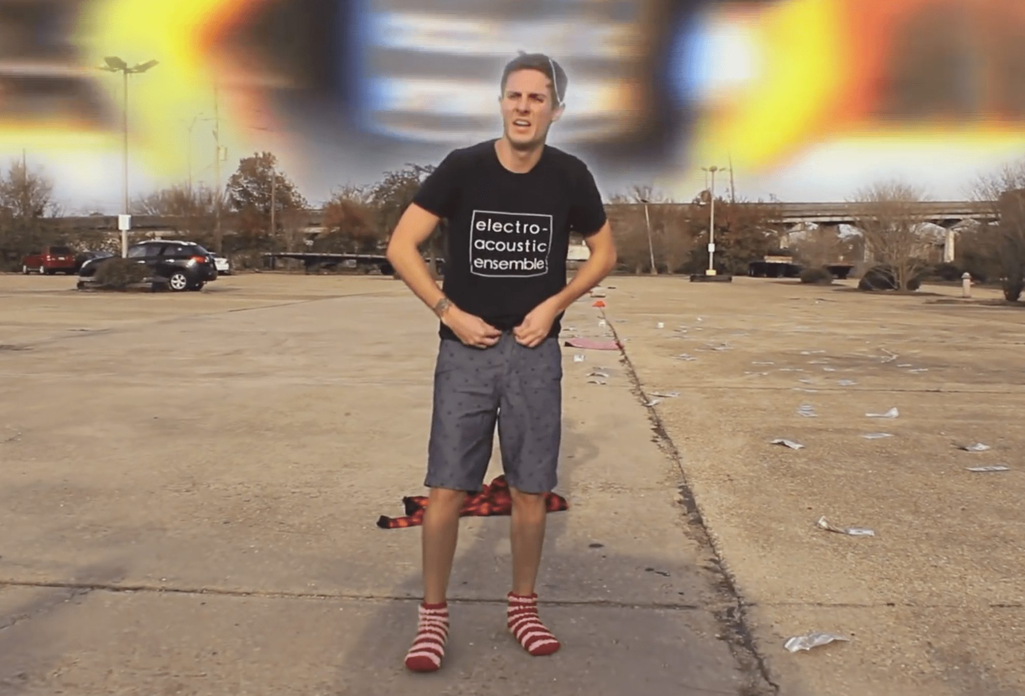 Synthed-out New Orleans quartet Sharks' Teeth are gearing up for the release of It Transfers & Grows, their 17th(!) album. We premiered lead single "Don't Touch My Feet" last month, and now they've shared another new track, "It's Bad For You." Aside from some unintelligible vocoder vocals, it's an instrumental psychedelic robo-funk jam, and the accompanying video, directed by Devin Hildebrand, follows the story of a man trying to remove the many, many layers of clothing he's wearing while being pelted with silly string, dollar bills, and other objects. "The inspiration for the video was a dream I had," Devin Hildebrand told PureVolume, where the clip premiered. "I dreamt I was watching someone strip off endless layers of clothing while walking forward and glitching in rhythm to this song. I woke up and texted Tyler immediately and we made it happen shortly after." Both the song and the video are a whole lot of fun, and you can check them out below.