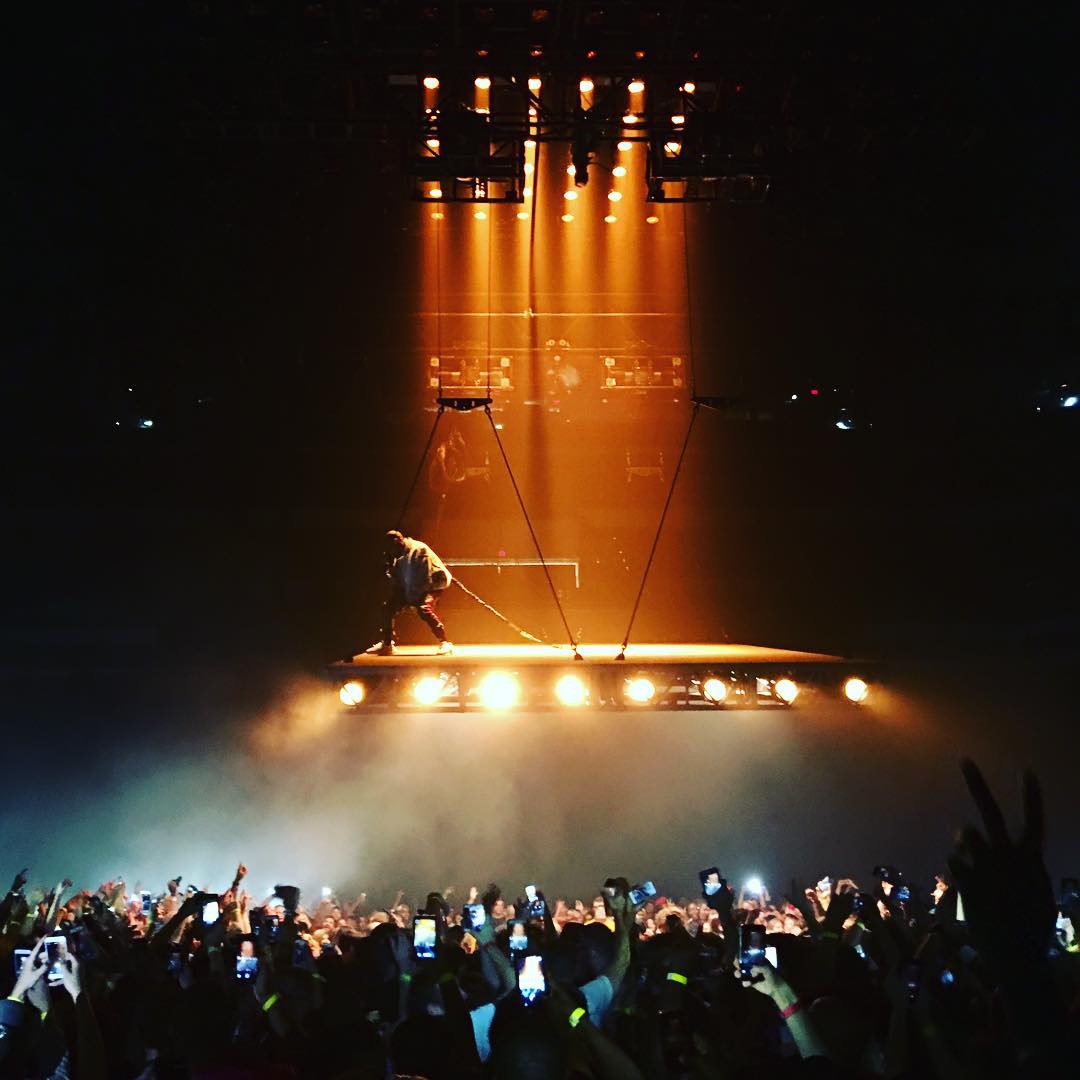 Kanye West just kicked off his Saint Pablo Tour in support of The Life Of Pablo at the Bankers Life Fieldhouse in Indianapolis. Say what you will about Kanye, but the man sure knows how to make an entrance: He opened his first North American show of the year by performing "Father Stretch My Hands" atop a floating stage hovering above the audience. It's a pretty impressive setup, and you can see it and be suitably impressed below.