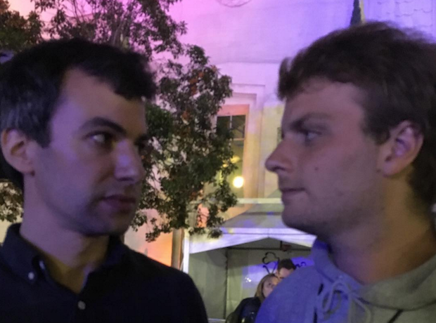 Very funny man Nathan Fielder joined Mac DeMarco on stage during his performance at this past weekend's FYF Festival. As Mat Mag reports, the Nathan For You star and creator "stood on stage and pretended to tune his guitar for the first 4 songs of the set, lit a cigarette and immediately put it out TWICE, and then got on his knees and kissed Mac DeMarco’s groin area for a very uncomfortable 5 seconds." You can watch some videos from Fielder's appearance throughout the set below.