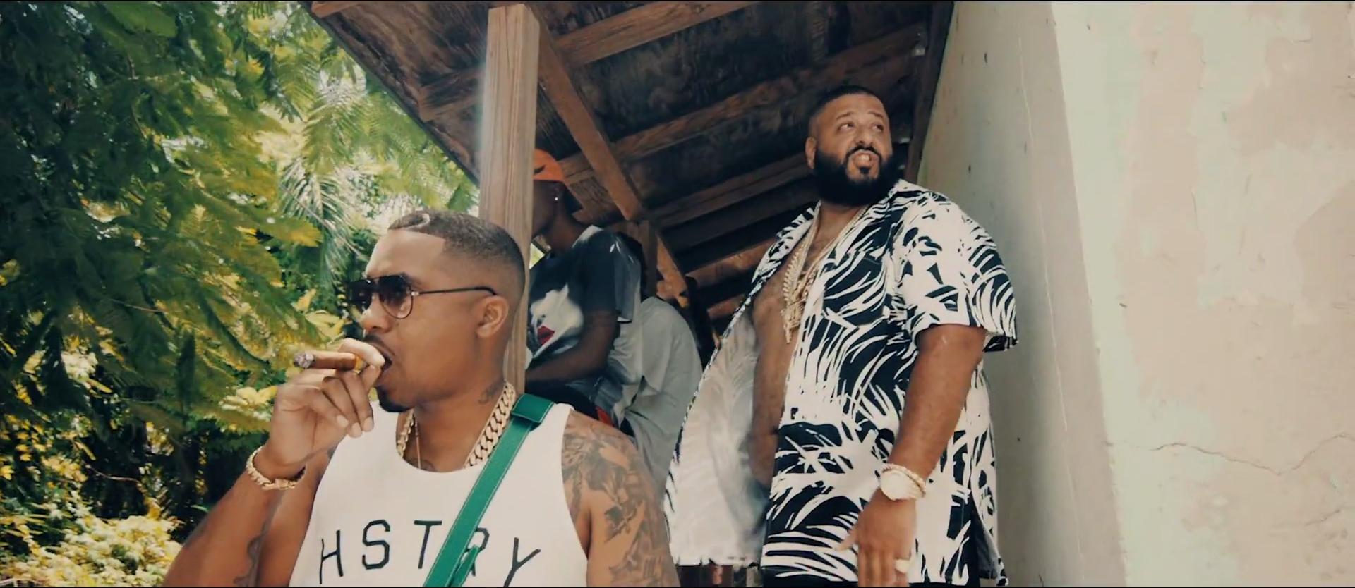 After Khaled makes a doofy pass at patois in a prolonged scene with Louie Rankin aka the original Jamaican dundatta Ox from the movie Belly (which Nas also starred in) and throws in some patented "they don't want" and "key" jabber, he and Nas flex in the Caribbean with chains galore, luxurious cars, and Hawaiian shirts (minus hanging with Little Chase). Check out the major key moves below.