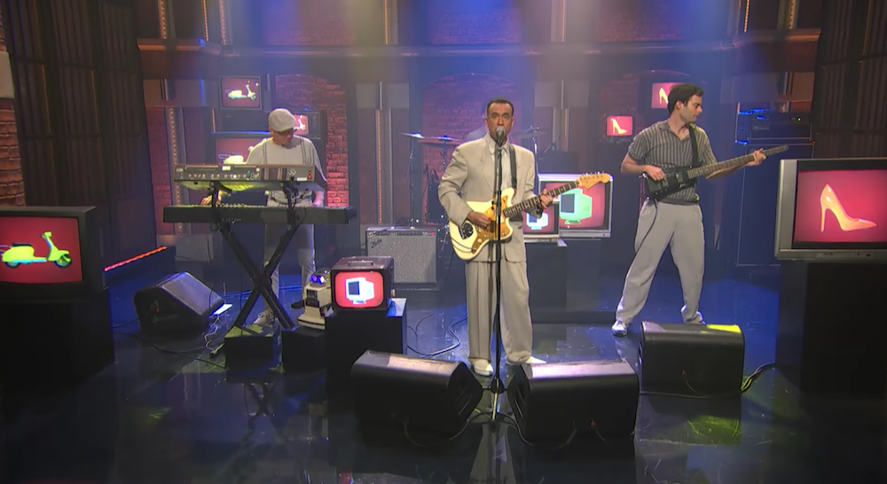 Fred Armisen and Bill Hader appeared as their Talking Heads parody band Test Pattern on last night's episode of Late Night With Seth Meyers. Meyers introduced the group as an "iconic art-rock band from Connecticut via the Lower East Side" and they performed a song called "Art + Student = Poor." Test Pattern is going to be the subject of an upcoming episode of their IFC show Documentary Now! (which premieres tonight) that parodies the Talking Heads' famous Jonathan Demme-directed concert film Stop Making Sense. That episode won't air for a few weeks, but you can get a taste of what they're going for below.