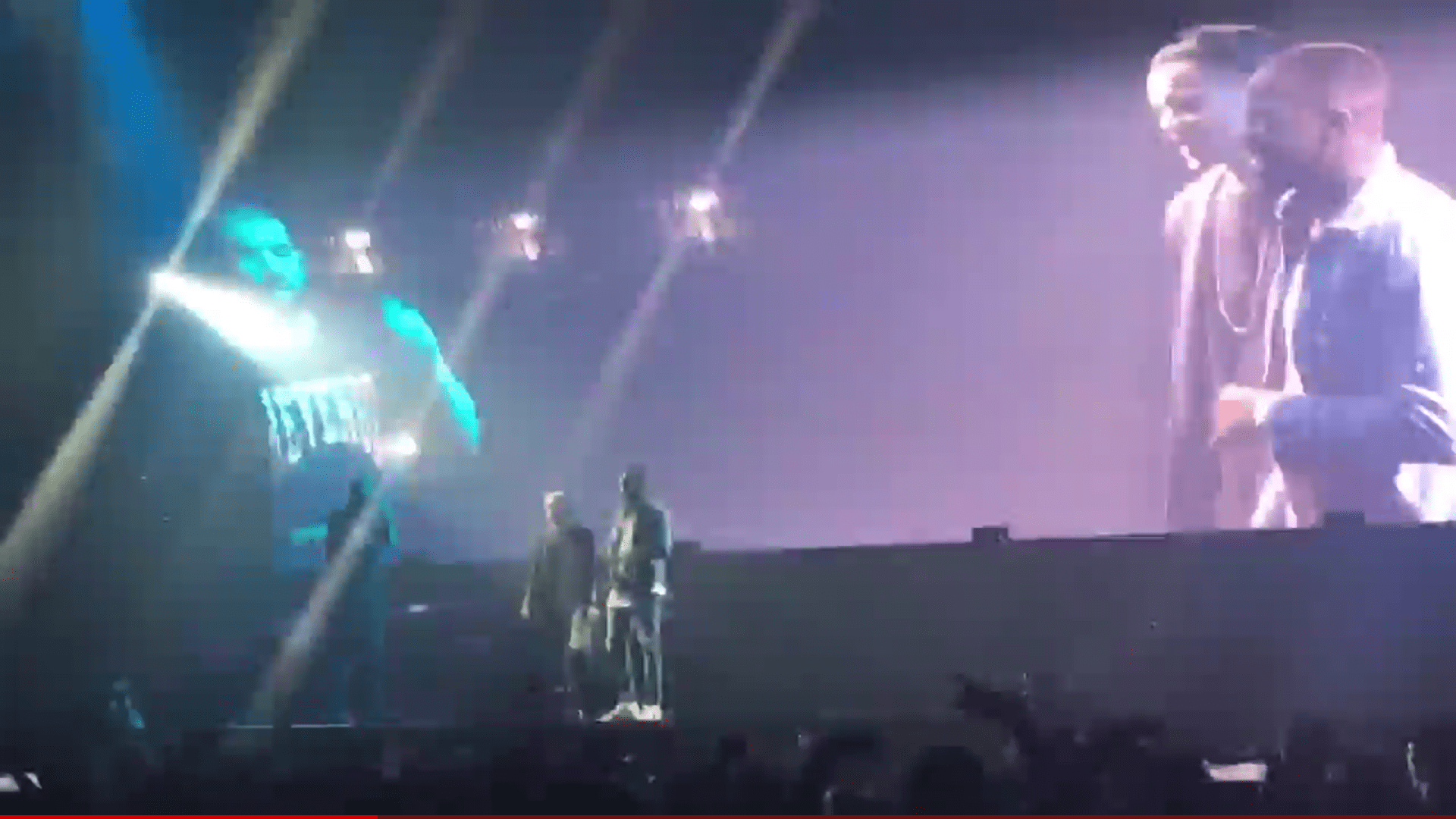 So despite being a team ambassador for his hometown Toronto Raptors, he has some juice in Oakland. During his two stops in Oakland on the Summer Sixteen tour at Oracle Arena, where the Golden State Warriors play, he brought out the newest (and most hated) Warrior Kevin Durant on Tuesday, and then followed that Wednesday with all-star favorites Steph Curry and Draymond Green. Aubrey rocked a crisp #35 Durant Warriors jersey as his "brother" Durant joined him onstage on 9/13. On 9/14, he welcomed Curry and Green before moving them to the back of the stage so Oakland legend Too $hort could perform his hit "Blow The Whistle" as they danced awkwardly in the background. Check out footage of Curry and Green up top via TMZ, and fan footage of Durant down bottom.