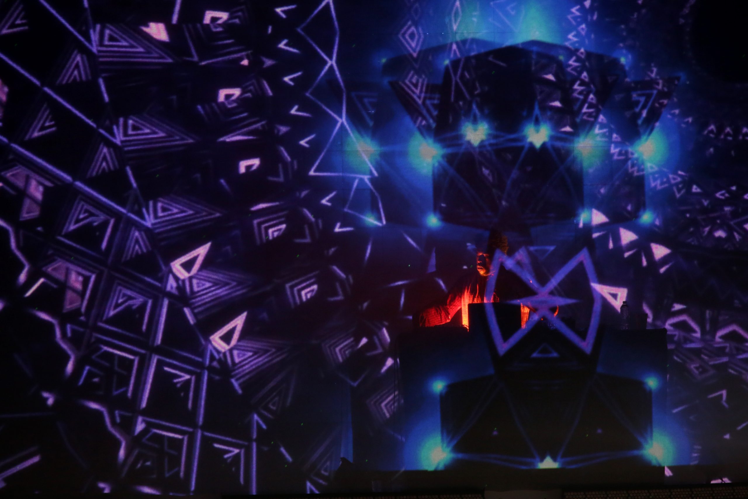 From Cosmogramma and Til The Quiet Comes tracks he transitioned into songs from last year's You're Dead!, and here the sound and visuals went sinister. "I'm making a movie right now," he told the crowd, "and it's a different life. Everyone is terrified of me. I showed it to people and they're like, 'This is unique, but I'm terrified.'" If you've seen Ellison's horror-porn short film, Royal, you know dude has a penchant for the deeply disturbing. He stalked out from behind the screen and rapped as his Capt. Murphy alter ego, strutting along the catwalk that spanned into the first few rows of the crowd.