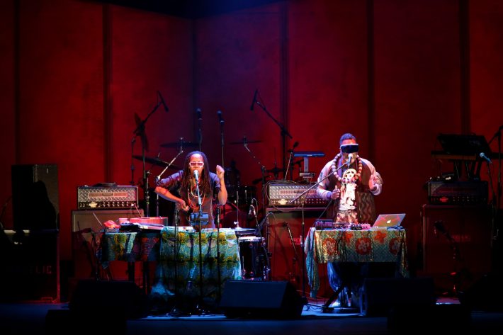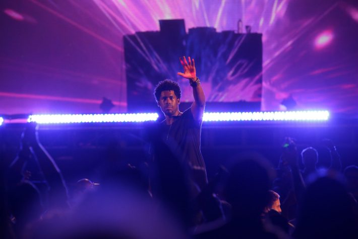 Retreating to his hidden console, Ellison reversed the bad trip: "Since George killed it earlier you wanna hear some funky shit?" From there he dropped his version of a couple Funkadelic tracks, plus "King Kunta" and "Wesley's Theory" from Kendrick Lamar's To Pimp A Butterfly -- songs that he produced and which Thundercat and George Clinton play on.