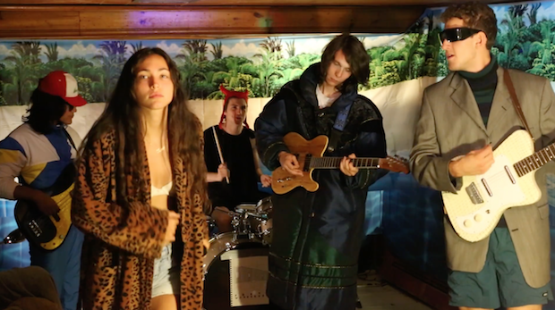 Forth Wanderers are releasing a new EP in a few months -- the follow-up to their 2014 debut, Tough Love -- and last month, they shared a fantastic new song called "Slop" that now has a video to go along with it. It features the promising young New Jersey band goofing around in their hometown of Montclair and playing in front of a tropical backdrop with vocalist Ava Trilling looking the camera dead-on. The vid was directed by Grace Rossi-Conway and Theo Schiller. Watch below.