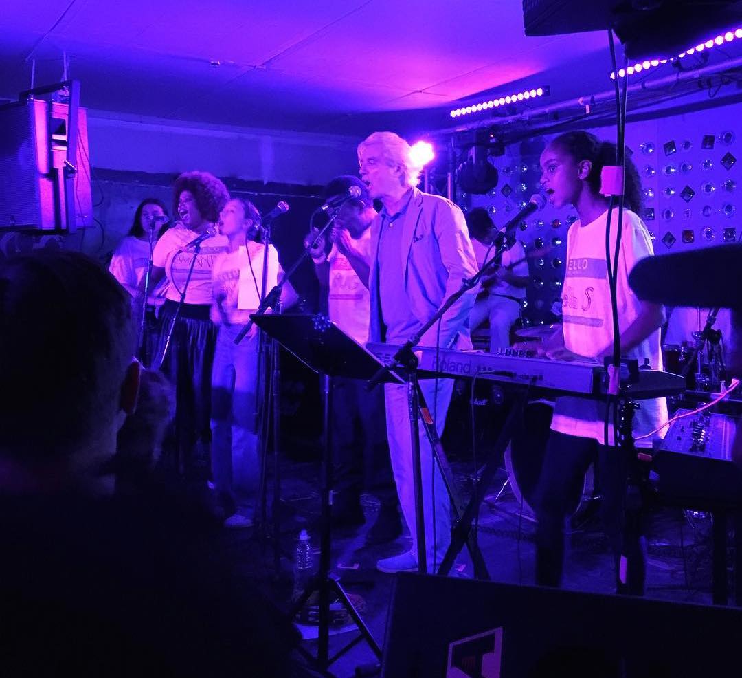 Last year, David Byrne released My Name Is, a compilation of songs by San Francisco funk outsider Doug Hream Blunt, on his Luaka Bop label. Blunt opened last night's Red Bull Sound Select NY show at Brooklyn's Baby's All Right, backed by teenage band Clover & The Clockworks, Joakim, the Rapture's Luke Jenner, and several musicians from Craiglist. As BrooklynVegan reports, Byrne himself took the stage near the end of the set to join in on a performance of Blunt's "Big Top." Watch some footage below.