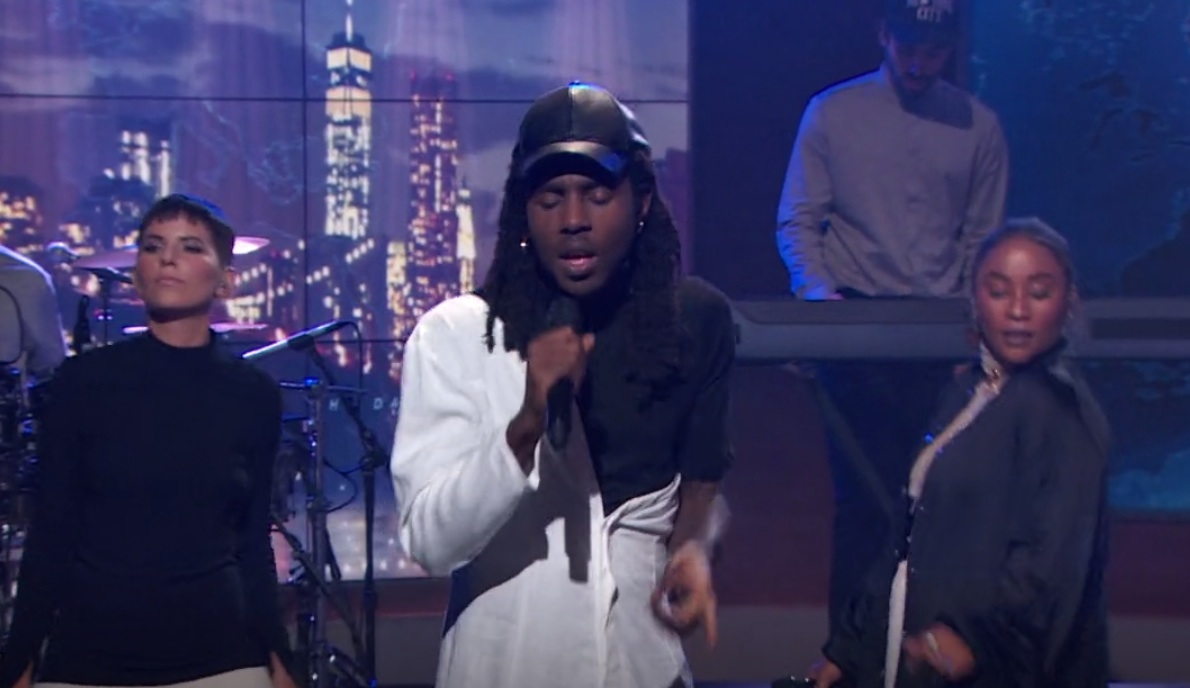 This morning, Blood Orange mastermind Dev Hynes appears on A Seat At The Table, the astonishing new album from his old collaborator Solange. And last night, Hynes was the musical guest on The Daily Show, where he performed a couple of songs from his own powerful recent effort Freetown Sound. If you saw Hynes' great Conan performance, you already know that he makes the most out of moments like these. And on The Daily Show, he appeared wearing something that could've been a church gown or a dress and sang with four different backup singers. On the show itself, he performed "Juicy 10-4." And in a bonus online-only video, he did a brief interview with Trevor Noah and sang another album track, "Love Ya." Watch both performances below.