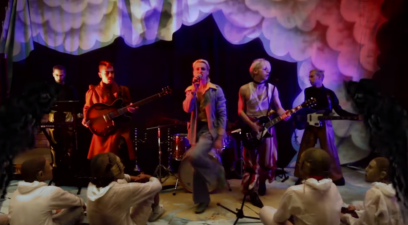 London noisemakers HMLTD, the band formerly known as Happy Meal LTD, are back today with a jarring new video for "Stained," the A-side from their debut 7". (We heard B-side "Is This What You Wanted?" last month.) The new track matches hauntingly aggressive bellows with a post-punk backing track that's alternately dissonant, explosive, and gorgeously crystalline. In director Jenkin Van Zyl's video, grotesque body horror, colorful pageantry, and strobe effects combine into something absolutely wild. Watch below if you dare, and please be warned that the strobe effects are intense.