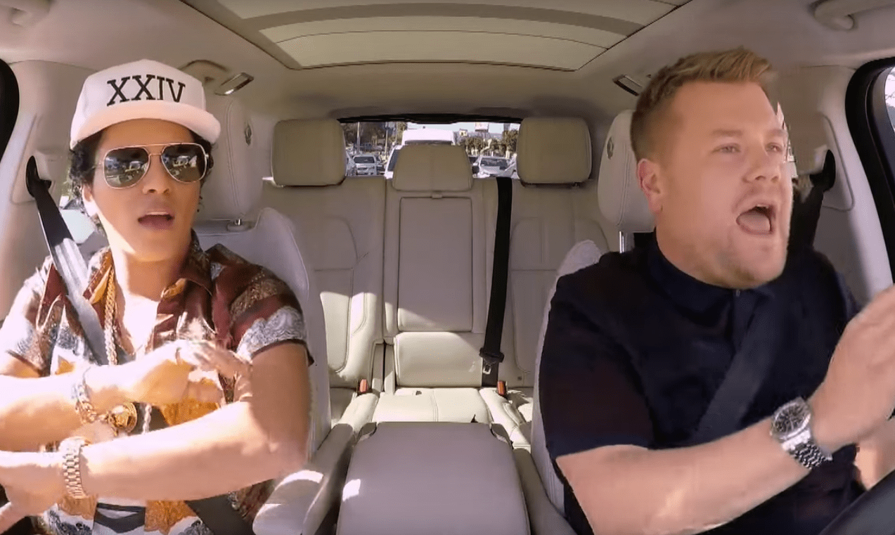 Last week, James Corden had Madonna on his phenomenally popular Carpool Karaoke segment. It went badly. This week, things went differently. Corden brought in Bruno Mars, who is basically the ideal Carpool Karaoke guest. Mars is a consummate entertainer who can be ingratiating without forcing anything, one who knows how to perform even when he's riding shotgun with a British late-night goofball. He has a discography that, while it's only three albums deep, is loaded with hits. And he has hits that make for great car singalongs. Recent numbers like "24K Magic" and "Versace On The Floor" can hang with "Uptown Funk!" and "Grenade" and "Locked Out Of Heaven." He seems like he's still happy to hear "Uptown Funk!" on a car stereo, which, I mean, if I was him, I'd be pretty psyched about it too. And he also gave a taste of the Elvis impersonation he did as part of his family's hotel band when he was four. It's a great Elvis impersonation! The whole segment was about as fun as these things get, and you can watch it below.