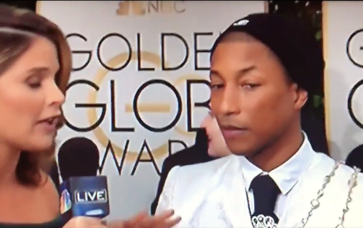 At last night's Golden Globe Awards, Pharrell Williams was nominated for co-writing the score for the movie Hidden Figures, the historical-drama hit about the black women who helped develop the NASA space program. But Jenna Bush Hager, the Today host and the daughter of a former president, evidently got that movie's title tangled up with that of another movie with a predominantly black cast. Talking to Pharrell on NBC's red-carpet pre-show, Bush Hager mentioned the movie "Hidden Fences" to the hitmaker, and the face he made became an immediate meme.