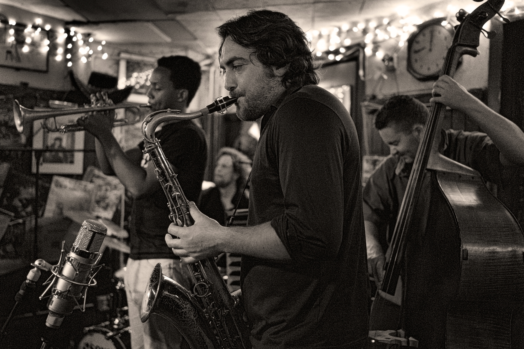 Of course, this year, politics seems both unavoidable and uniquely horrible; it’s like a rancid fog that coats the inside of your nose and mouth when you’re just trying to breathe. People are genuinely frightened of what the future holds, in a way they haven’t been in a long time, and the highly vocal minority who do support the incoming president don’t seem like the kind of people you can productively exchange ideas with. It’s a weird, demoralizing time, and I wouldn’t fault any musician who chose to pursue escapism, rather than engagement. But saxophonist Noah Preminger (pictured above) is going in.