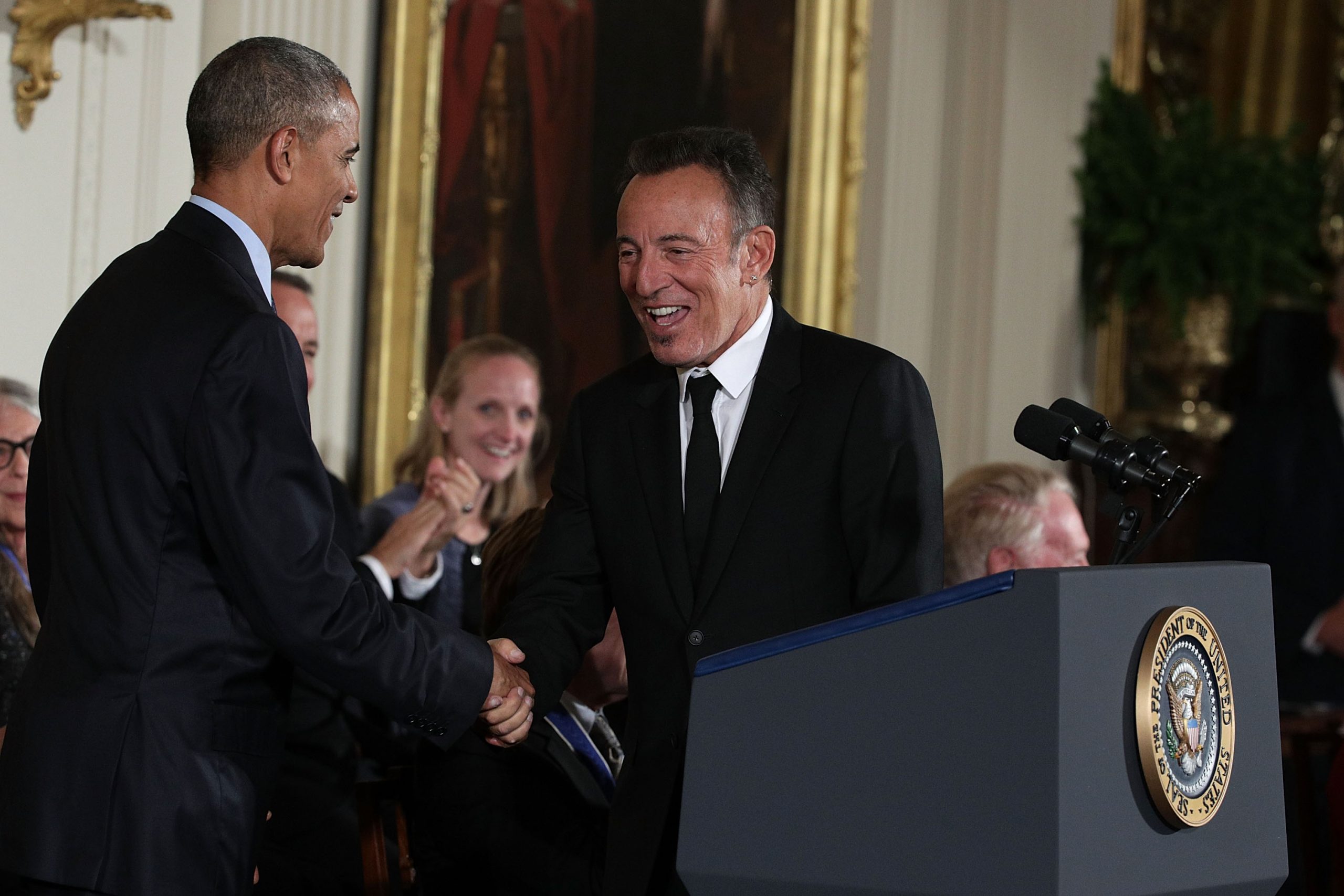 A few months ago, Barack Obama awarded Bruce Springsteen with the Presidential Medal Of Freedom. And last week, two days after Obama delivered his farewell address, Springsteen returned to the White House to play a private farewell concert for Obama and his staff. He played a 15-song acoustic solo set, joined only by Patti Scialfa on two songs. Find the setlist below courtesy of Bruce Springsteen fansite Backstreets.