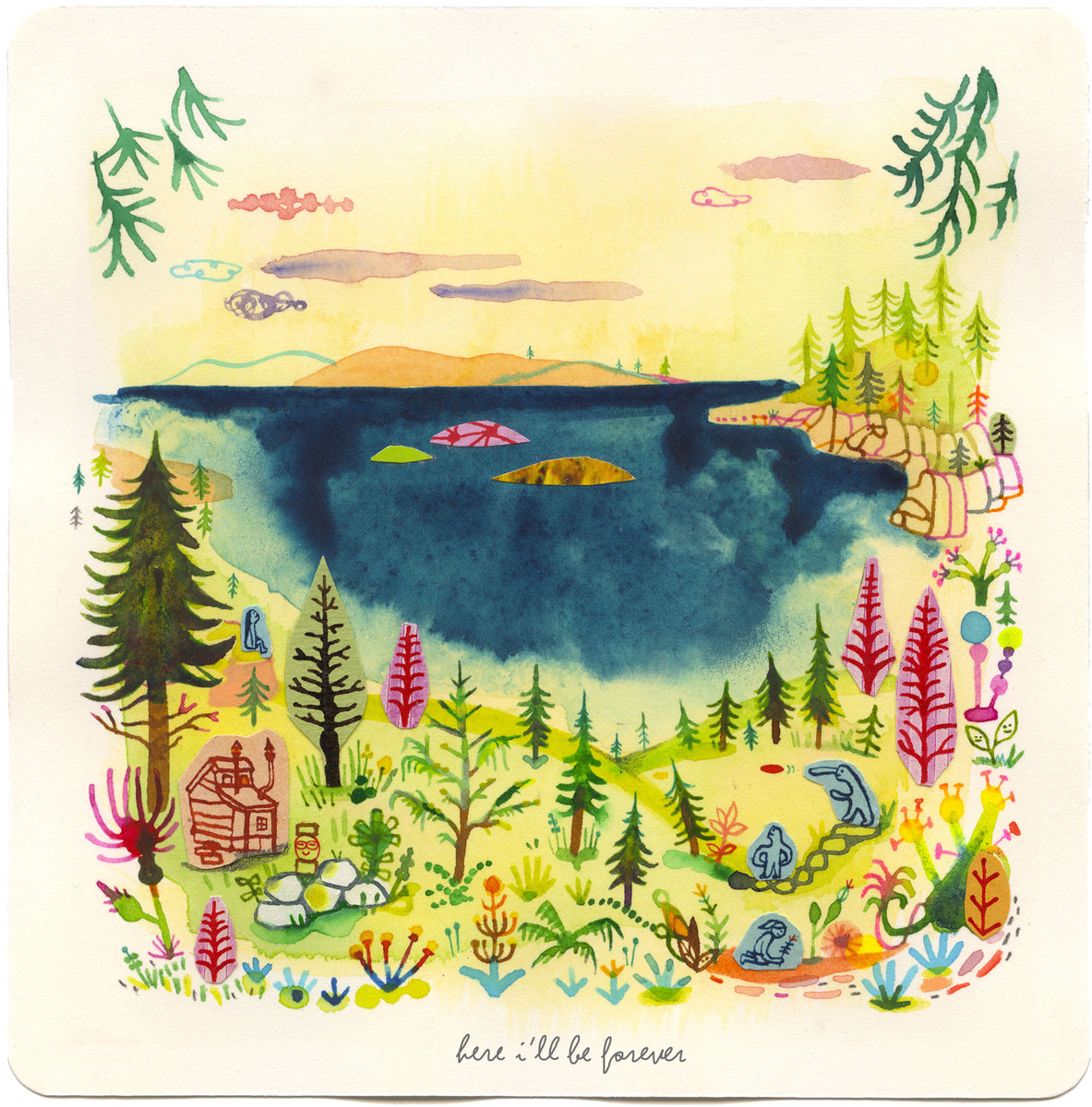 But these communities don't live and die by location; they merely shuffle around, adapting to new modes. One of the highlights on the album, "trails to the peaks of mtns," alludes to an eternal gathering spot: "There's a place you can go with your friends/ It's off the beaten path, so you better listen/ Twenty miles out and a hundred yards in/ Just look up at the sky, it's time to begin/ We've been coming here for centuries/ Keep it clean, keep it neat, and it's dream," Klein sings atop a scattered beat and a muted guitar. It's a testament to the openness of nature, and it's an invitation to create your own space wherever you feel most comfortable doing so, knowing that you're part of a long lineage of free spirits who have done the same. It's that sense of history and personal responsibility that makes Here I'll Be Forever such a comforting and warm listen.