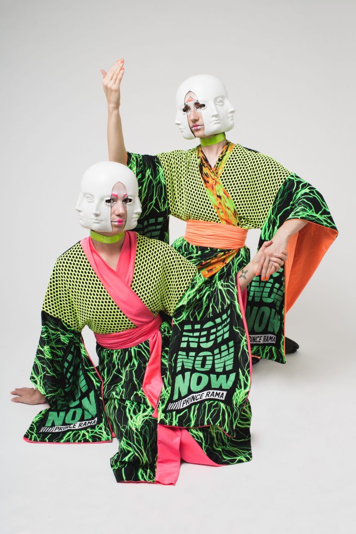 The video comes alongside the announcement of Xtreme Mess, Taraka's upcoming fashion line in collaboration with MessQueen's Courtney Gamble, which according to the press release is "the world's first Now Age fashion line ... of extreme sports-inspired outerwear infused with sci-fi medieval elements to create a neon universe that is entirely unique and tailored to 21st century extreme lifestyles." Prince Rama will be performing a DJ set at the Xtreme Mess launch party at Brooklyn Boulders LIC on 3/30, and the free event will also feature a vertical runway show and discounted rock climbing. Here's a photo by Derrick Belcham from the collection, featuring headpieces by Heidi Jieun Jouet:
