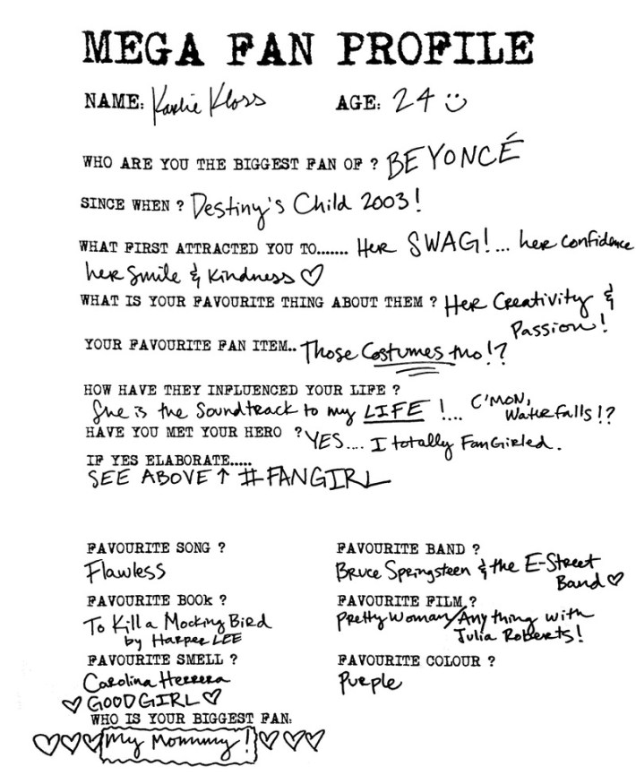 Supermodel and Taylor Swift squad member (does that still exist?) Karlie Kloss made a dumb mistake when filling out a "Mega Fan Profile" for The Love Magazine. While answering questions about how much she loves Beyoncé (who she says she's been a fan of since "Destiny's Child 2003!"), she wrote, "She is the Soundtrack to my LIFE! ... C'mon, Waterfalls!?" Now, of course, we all know that "Waterfalls" is a song performed by TLC, not Beyoncé or even Destiny's Child. Hmm...
