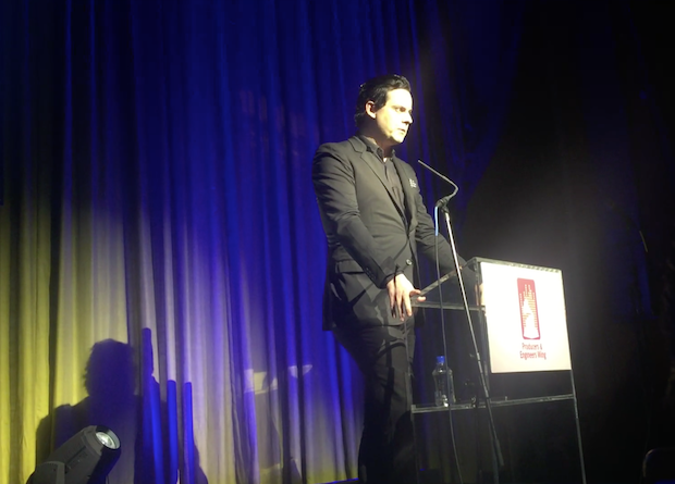 Jack White was honored by The Recording Academy's Producers & Engineers Wing this week as part of the Grammy Week celebration. He's the 10th such person to be honored by that wing of the academy since they started giving out the award in 2007, and he appeared at The Village Studios in West Los Angeles to receive the honor, and he said a few words while he was there. "I had a speech prepared by Kellyanne Conway and Bob Lefsetz, but I forgot it in the car on the way here so I'm just gonna wing it," White opened, before continuing on to talk about his recording production techniques and share a funny story about recording the second White Stripes album with Meg White in his living room. Watch below.