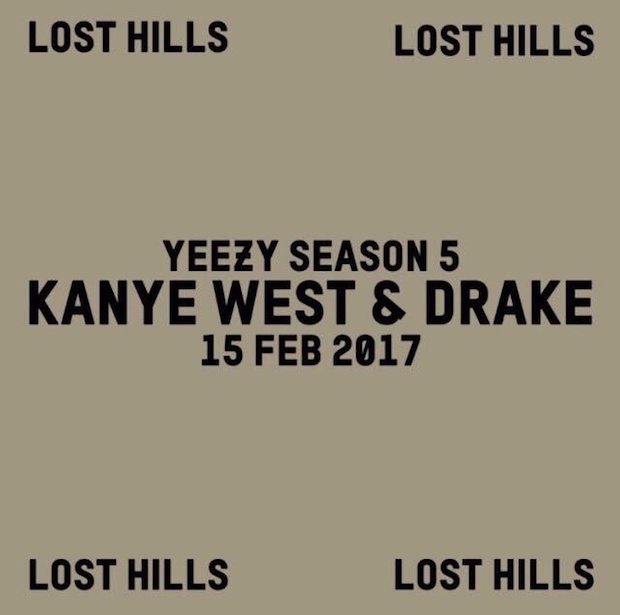 Kanye West and Drake have been teasing a collaborative album for a while now, and it looks like material from the two rappers may finally come to fruition. Today is West's Yeezy Season 5 show during New York Fashion Week, and, as FACT points out, GQ writer Jake Woolf posted some merch last night that had the words Lost Hills on it, and followed that up with an invite to the show that teases a "Kanye West & Drake" pairing.It's unclear exactly what it will entail, but he makes an "assumption it's just the release of a single," mostly because Drake is still in the UK on tour. (That's also why he missed this past weekend's Grammys. Kanye just didn't want to go.)