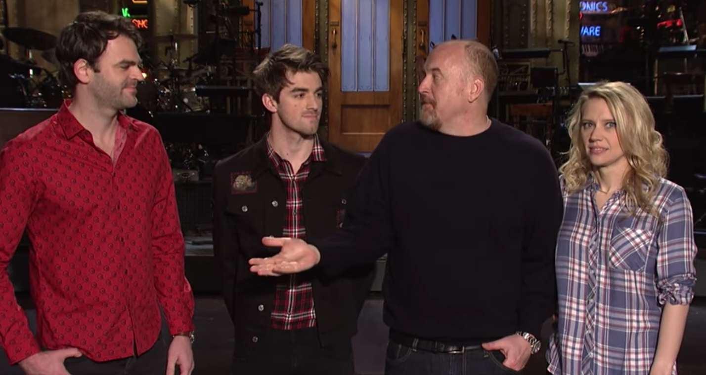 Big week for Saturday Night Live! Not only is tragicomic genius Louis C.K. hosting again, he'll be joined by pop's reigning overlords the Chainsmokers the day after their debut album drops. The former got in a minor dig at the latter in this week's customary promos, though he softened it significantly, and everyone seemed like they were in on the joke. Kate McKinnon's gags in the next two promos are way funnier, FWIW. Watch below.