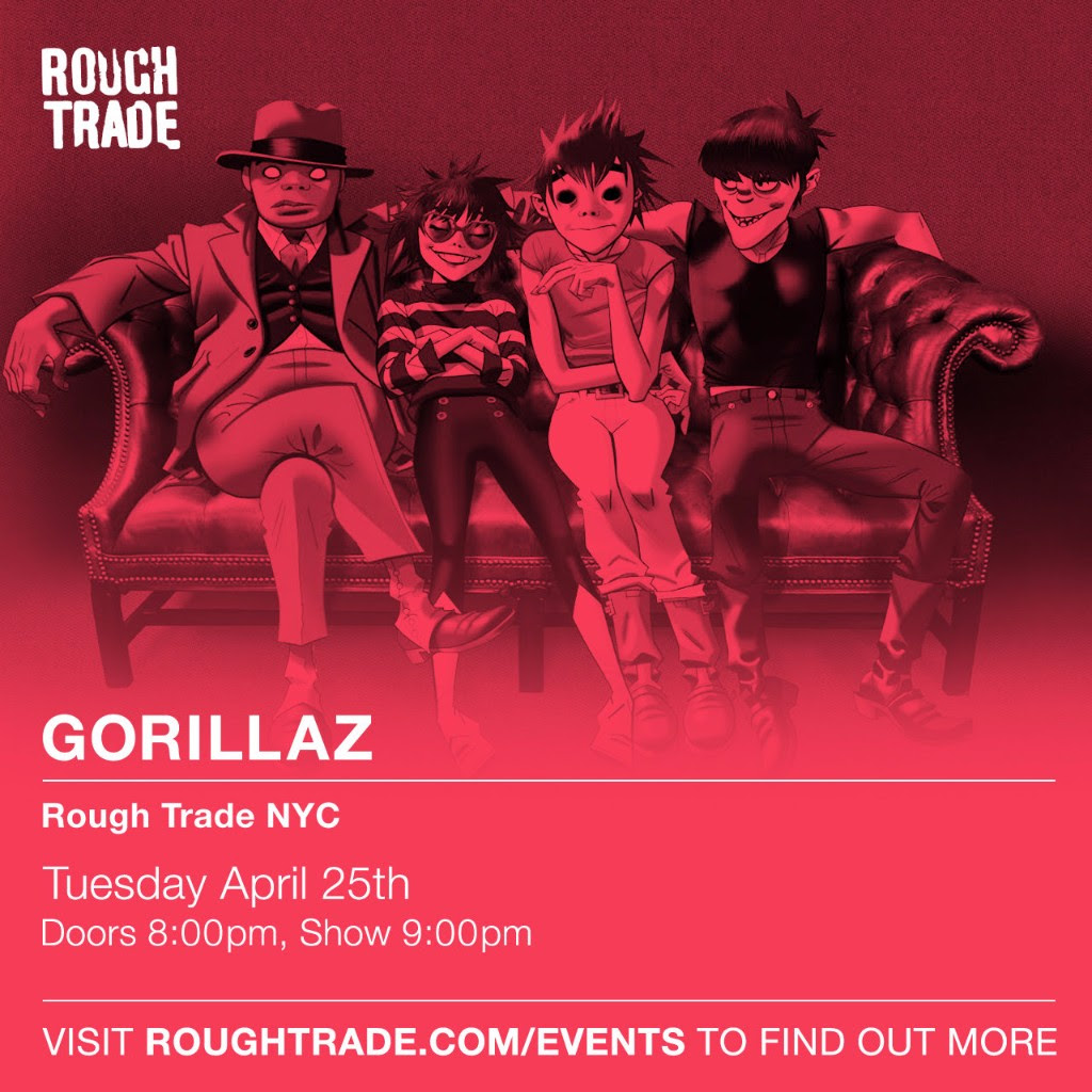 Gorillaz season is upon us. The band will release their new album, Humanz, next Friday, and this summer they'll embark on a North American tour. Today, Gorillaz announced that they'll be performing an intimate show at Rough Trade NYC on 4/25. They're also playing Colbert on 4/27. Tickets for the Rough Trade show will be available that day if you pre-order Humanz at the shop. Check out the poster above and learn more about the show here.