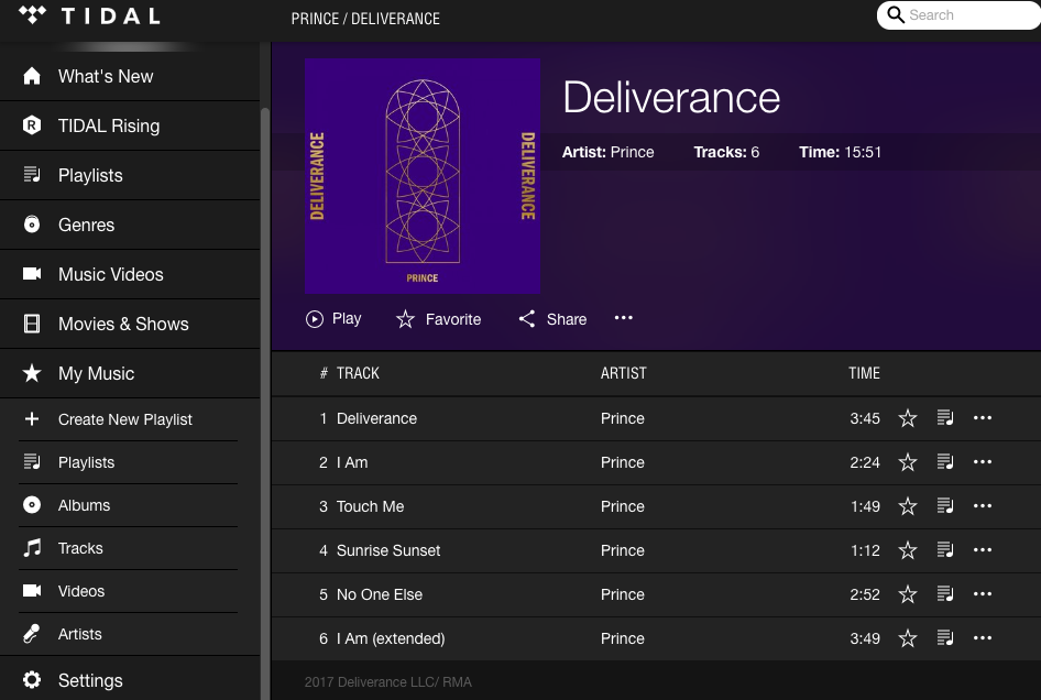 UPDATE: The EP — blocked from being released on Apple Music, Amazon, and other services — is now apparently streaming on Tidal. Tidal (and Roc Nation) had already been locked in a legal battle with Prince’s estate over the right to stream his music.