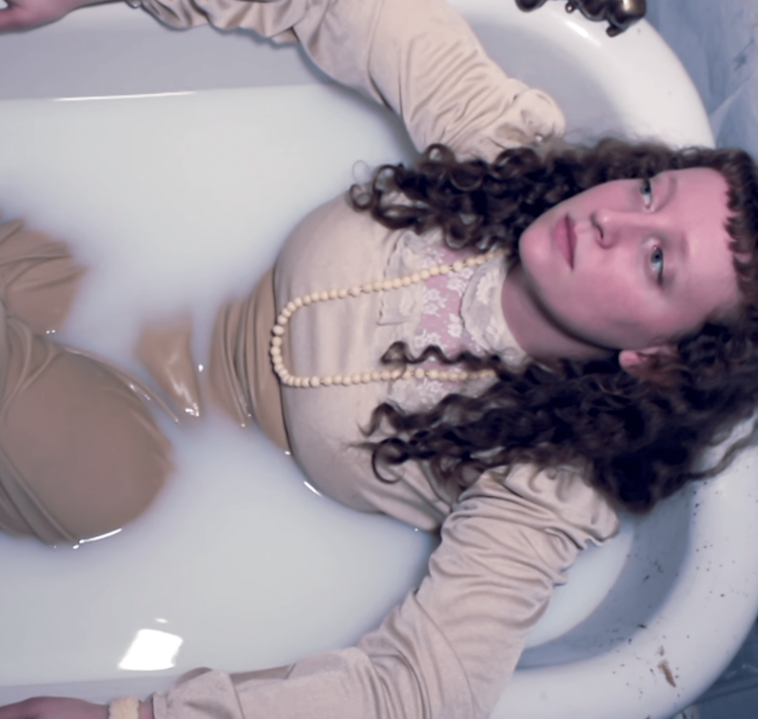 Thelma just released their excellent self-titled debut last month, and now the Brooklyn-based band are back with visuals for early single "White Couches." The video from Courtney Brown and Keara Martin is strange but beautiful, blending shots of a homemade diorama with a sequence showing frontwoman Natasha Jacobs bathing, fully clothed, in what appears to be milk. Watch below.