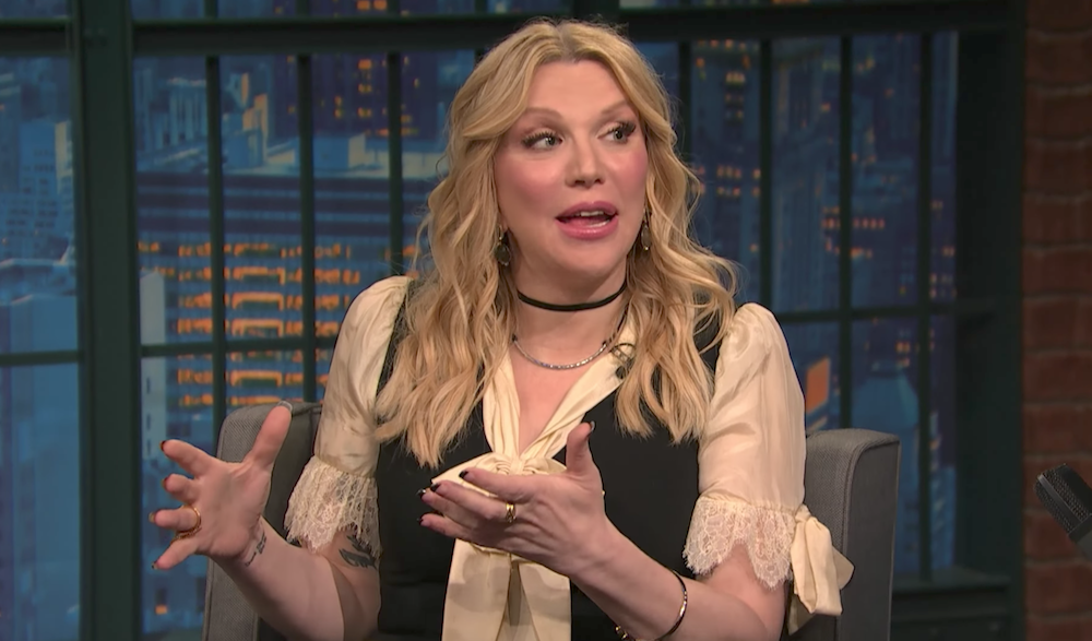 This weekend, the Lifetime movie about the Menendez brothers' murders that Courtney Love has a starring role in is making its grand debut, and she went on Late Night With Seth Meyers as a guest. Love talked a little bit about the movie, but mostly shed some light on the memoir she's writing -- which is currently on its second ghostwriter -- and how that, though she has a lot of secrets to keep, anything that's publicly on her Wikipedia page is fair game. She also talks about the friendship that resulted from touring with Lana Del Rey and some of the music she's been listening to (the Kills, Jack White) and some music of her own that she's working on, which she says is rock-based but needs some beats. Watch Love's interview segments below.