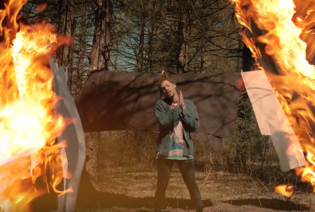 Rapper/producer Kweku Collins released a follow-up to last year's stellar full-length debut, Nat Love, in the form of a stacked nine-track EP Grey back in April. Now, we get to see second track "Aya," featuring Allan Kingdom, in all its fiery music-video glory courtesy of director Cody LaPlant. In the clip's most memorable scene, just when the chorus comes in with, "You had hair like the sun/ A thousand souls set a flame/ You had a name sound like fire/ Feels like your eyes burn the same," suddenly the forest surrounding Collins is up in flames. Check it out below.