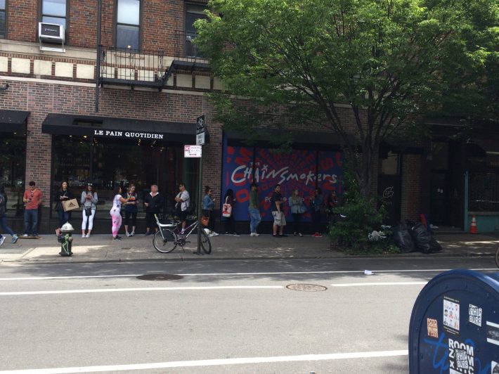 Megafans of any band -- unless the band is Skrewdriver or, you know, Dave Matthews -- are typically dorky sweeties eager to tell how they've actually liked the band, that you thought was somewhat new, for several hundred years. I forgot to anticipate this in preparation of the pop-up. I expected a line of frat guys and frat gals, or Earth-traversing EDM beersex demons, or whoever it is who likes the Chainsmokers, rude and ready to party. Instead I got a Christine, a nice woman who'd gotten there at 2AM to be first in line. She told me she's liked the Chainsmokers for a while, but that the release of their new album had intensified her fandom. "I just feel like they're really fun, cool guys. They seem really chill."