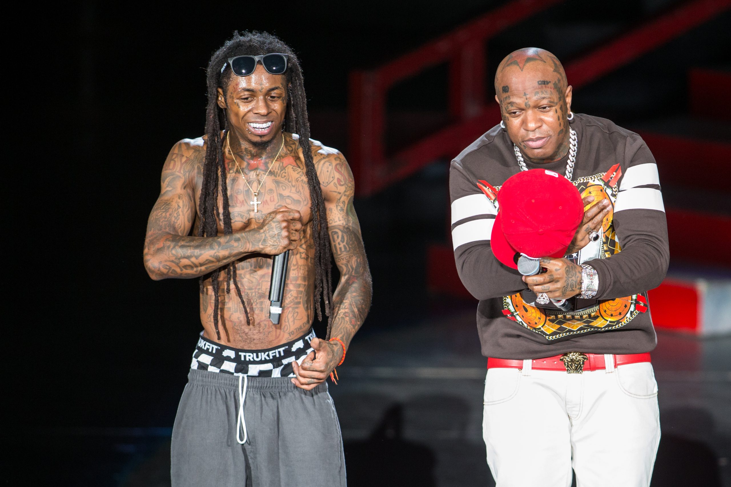 It's been difficult to keep track of the various twists and turns in Lil Wayne's feud with former friend, label head, and "daddy" Birdman. Wayne declared himself a "prisoner" on Birdman's Cash Money label way back in December 2014 when it became clear the label was holding up the release of Wayne's Carter V album. Since then developments have included Wayne's $51 million lawsuit against Cash Money, Birdman's profession of love for his "son" Weezy not long after an indictment alleged the former had conspired to kill the latter, news of a squashed beef followed by a reunion track early last year, and then Wayne's abrupt assertion last summer that he'd never work with Birdman again. So who even knows what's going on between them at this point. Clearly, relations are not so good right now because, as Rap-Up points out, on stage at a recent concert Weezy yelled, "Birdman, you can suck my dick!" Watch footage below.