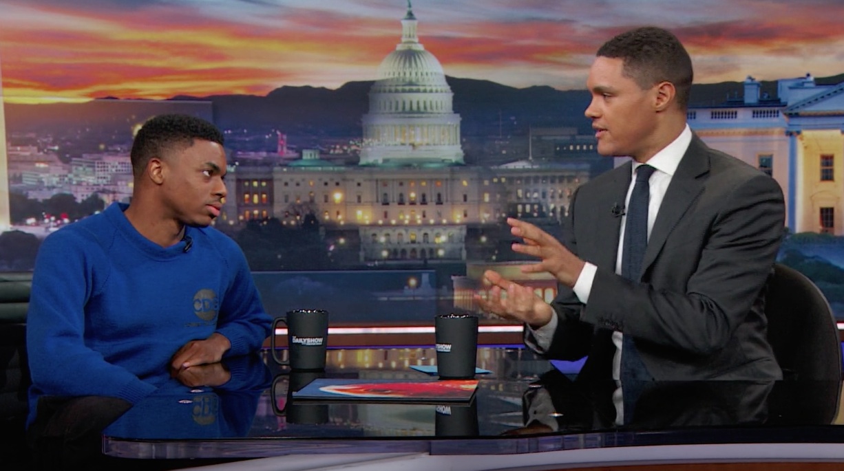 We're a mere day away from the release of Big Fish Theory, the new album from the great Long Beach rapper Vince Staples. And since Staples is one of the funniest, most mercurial people we've got working in music today, it made sense that, when he was on The Daily Show last night, he didn't perform any of its singles. Instead, he sat down with host Trevor Noah and had a great little five-minute conversation, one that touched on the new album, Staples' public advocacy of Sprite, and the idea of Afrofuturism, about which Staples said simply, "I like saying stuff about black people to white people." He also said that he's trying to get Grace Jones' streams up. Check it out below.