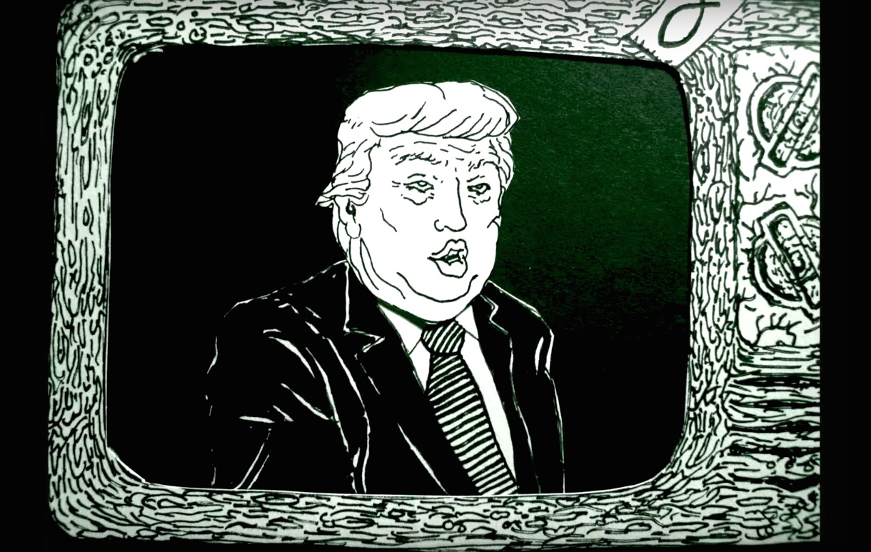 Faith No More frontman Mike Patton is the singer for the new band Dead Cross, a frantic hardcore four-piece that also features former Slayer drummer Dave Lombardo, as well as members of bands like the Locust and Retox. We've posted their early track "Grave Slave," and now they've shared a video for the new song "Seizure And Desist," a spazzy and ferocious musical attack. The animated video comes from artist Eric Livingston, who also did the cover of the band's forthcoming album. The clip starts out with the image of Donald Trump's face melting, and it also features bodies being sawed in half, faces being ripped off, and giant bugs crawling out of people. It's gross! I like it! Check it out below, via Loudwire.