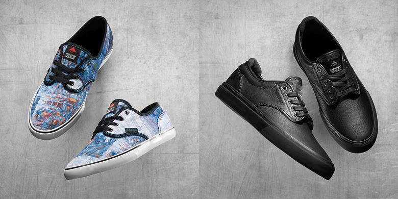 An Explosions In The Sky sneaker! It's what you've always wanted! What's that, you say? Yes, that's right, the preeminent Texas post-rock band has its very own sneaker. Not just one, but two sneakers. Two sneakers. EITS has teamed up with apparel company Emerica to create two branded shoes, one that features the artwork from their most recent album, The Wilderness, and another that just looks like a plain ol' black shoe. Exciting times we live in, huh? Here's a video about the long history between shoes and the Explosions In The Sky: