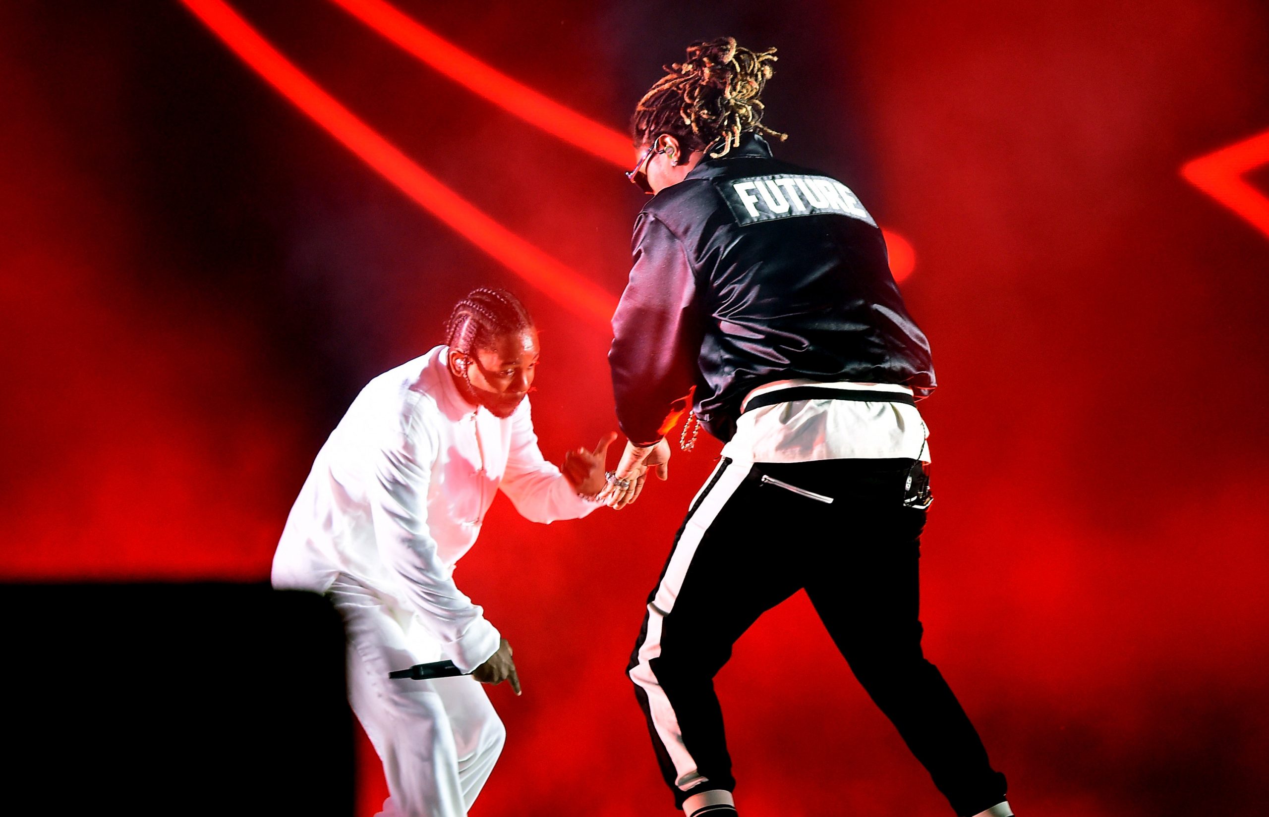 INDIO, CA – APRIL 16: Rappers Kendrick Lamar and Future perform on the Coachella Stage during day 3 of the Coachella Valley Music And Arts Festival (Weekend 1) at the Empire Polo Club on April 16, 2017 in Indio, California. (Photo by Kevin Winter/Getty Images for Coachella)