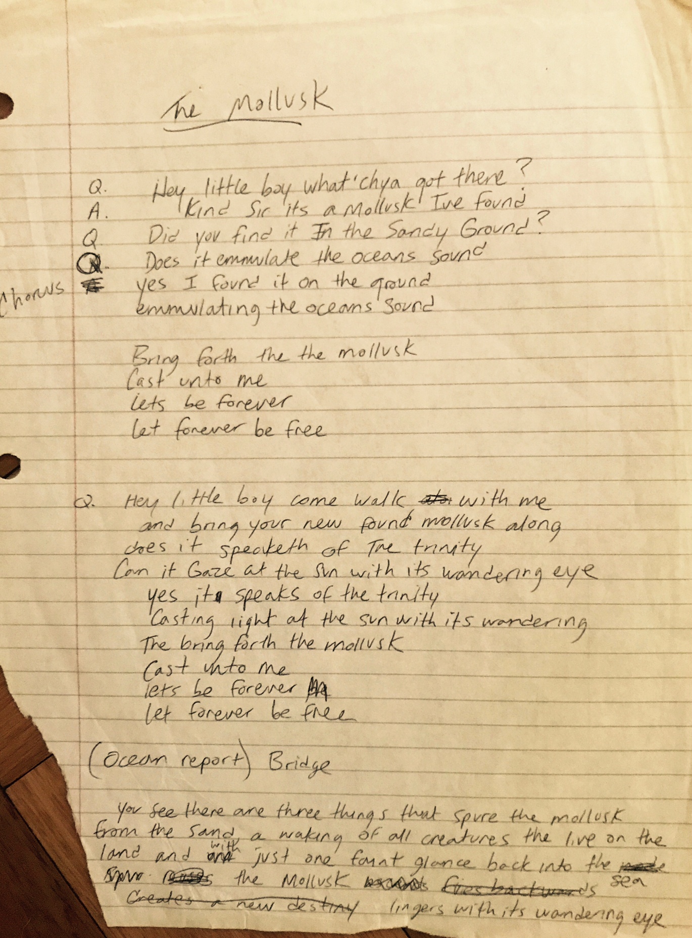 In the first two weeks, we recorded there day and night, and drove home listening to the cassettes in the car. In the first two or three trips down to the shore, we pretty much wrote that whole record, or at least the best parts of it. We wrote "The Mollusk," "Mutilated Lips," "Ocean Man," "The Golden Eel," and "She Wanted To Leave." Every song reinforced the vibe, but it was a vibe we weren't looking for. We didn't know that the environment was going to have such an effect. Each song, beginning with "Cold Blows The Wind," inspired and reinforced that direction.