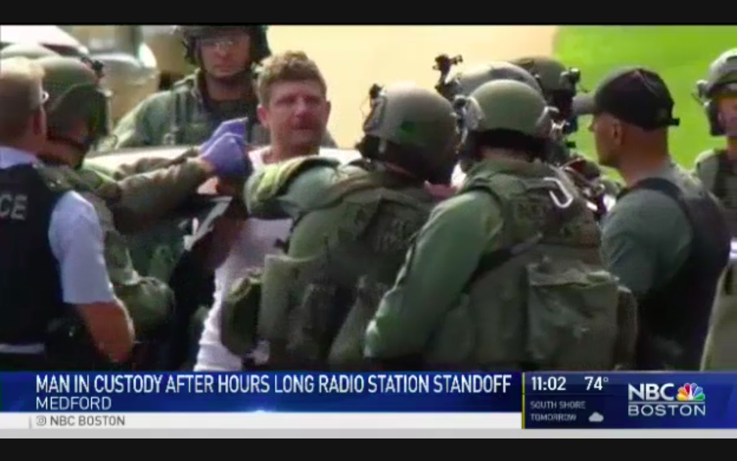 The man surrendered around 4:30 p.m. WBZ-TV reports he had minor self-inflicted cuts on his arms.