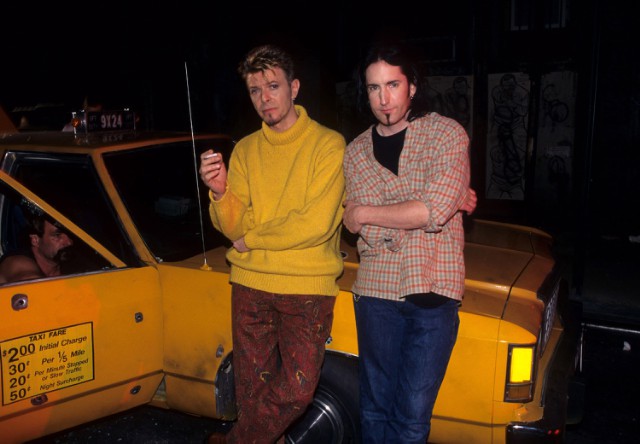Last night, Nine Inch Nails played Bakersfield's Rabobank Arena, marking their first live show in three years. The band, who will release the new ADD VIOLENCE EP tomorrow, debuted a bunch of songs during the show, including the new single "Less Than" and songs from last year's Not The Actual Events EP. But the most notable new song -- and, quite possibly, the whole show's emotional high point -- came when Reznor honored the late David Bowie, his old friend, tourmate, and collaborator. Reznor has already spoken of his relationship with Bowie, but at last night's show, he mentioned that he and his bandmates, all of whom considered Bowie a hero, had worked out a version of one of Bowie's songs that gave them "some closure." That cover was "I Can't Give Everything Away," one of the most resonant songs from Bowie's 2016 goodbye album Blackstar. The Nine Inch Nails version of the song turned out to be a powerful combination of Blackstar's expressionistic skronk and Nine Inch Nails' arena catharsis. Check out a live video below.