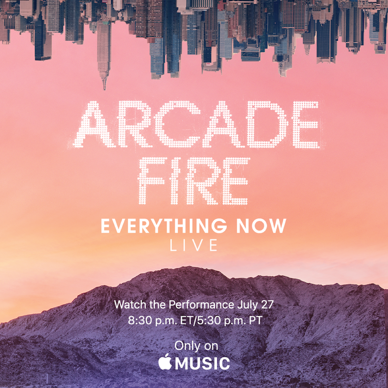 Tune in July 27 8:30pm ET #EverythingNowLive pic.twitter.com/fEUmd8qwzK— Arcade Fire (@arcadefire) July 20, 2017