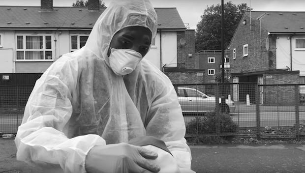 UK producer Actress released a new album, AZD, earlier this year, and today he's shared a video for "Falling Rizlas" from it that was directed by underground auteur Dean Blunt. It's a creeping black-and-white slo-mo shot of a forensics investigator cleaning up a crime scene. Check it out below and revisit our recent interview with Actress.