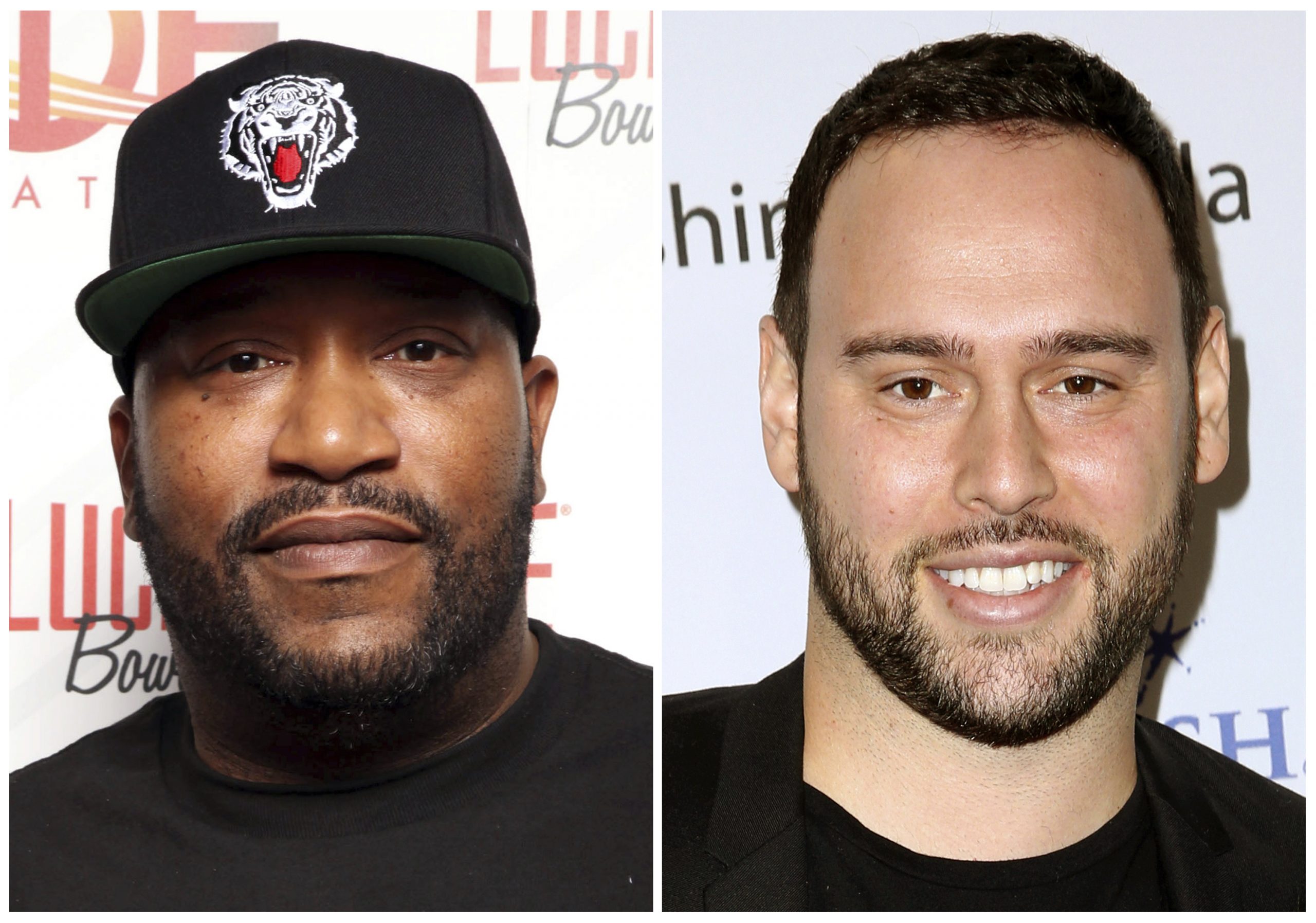 This combination photo shows Houston rapper Bun B in Miami Beach in 2013, left, and music manager Scooter Braun in Los Angeles in 2016. The pair are planning a benefit concert to help those affected by Tropical Storm Harvey. (AP Photo/File)