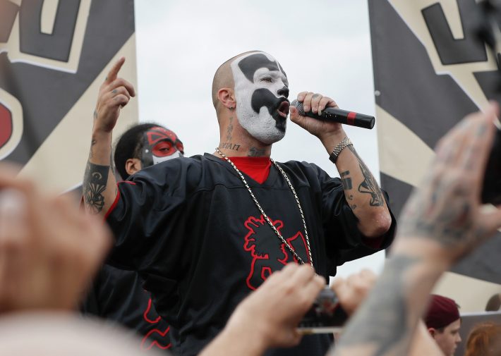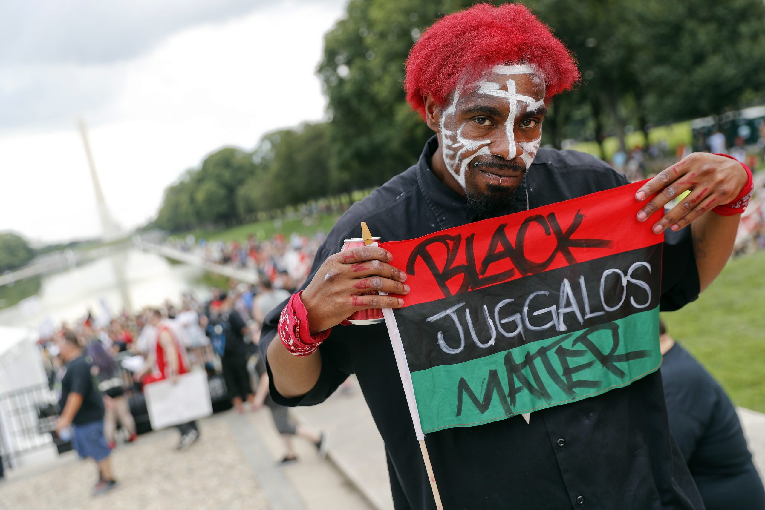 According to the Associated Press, the march attracted "more than 1,000 fans of the band Insane Clown Posse" -- so, not exactly the Million Clown March we'd pictured. Both members of ICP, Shaggy 2 Dope and Violent J, spoke at the rally, and according to the The Toronto Star's Daniel Dale, they both mentioned buttholes during their commentary about Juggalo civil rights. Some noteworthy signs: "Judge me not by the color of my facepaint," "Faygo not fascism," "Make America whoop again," "Dragnets: How do they work?" As one speaker at the rally asserted, "Today we are all clowns." We couldn't have said it better. Here are some photos from the AP plus some on-the-ground reporting from Dale. Whoop whoop.