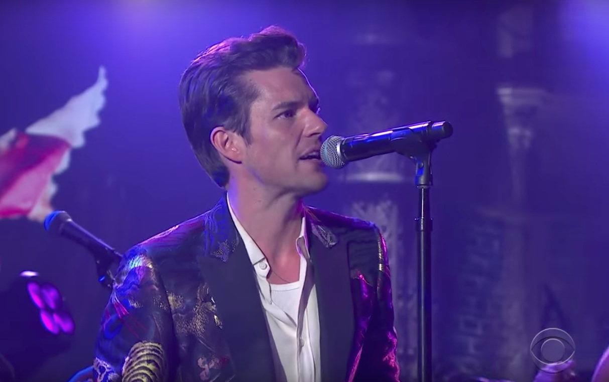 Today's the day that the Killers come out with their new album Wonderful Wonderful. And last night, the new touring lineup of the band was on Stephen Colbert's Late Show, performing the sly and stiff white-funk single "The Man." It's a long way from being their best song, but they certainly brought the performance to the show, with Brandon Flowers rocking an immaculately tailored suit with shiny pictures all over it and a huge lit-up masculine symbol sitting at center stage. It's enough to make you wonder: When are the Killers going to get a Vegas show? They'd be perfect for it! They wouldn't even have to rent houses! Watch the performance below.