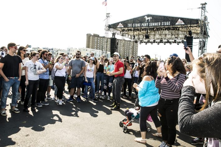 Contrary to what you might think, Shadow Of The City isn’t something Antonoff slapped his name onto and then delegated to an apparatus of logistics people. He is the logistics people. There are no sponsors; he bankrolls the whole thing. Days before, he was on-site, measuring out where and how big the VIP section was going to be. His favorite Jersey Shore donut shop caters backstage for the bands. And he has strict guidelines for making sure the lineups stay true to his vision.